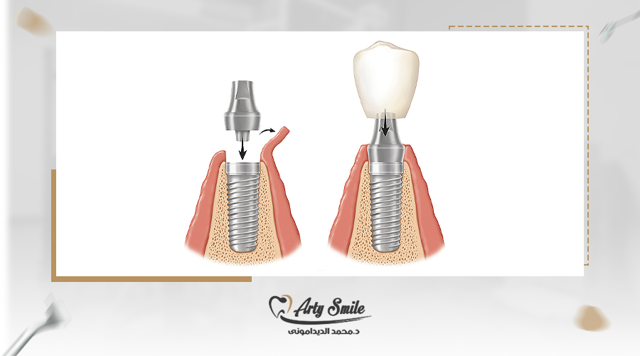 - بعد ذلك يتم إجراء شق صغير في اللثة وعظام الفك كي يقوم الطبيب بوضع الغرسات.
